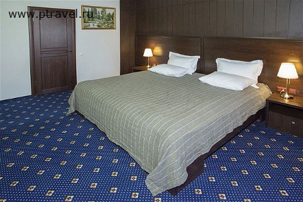 - 2-местный 1-комнатный "Стандарт" с видом на озеро (Ю-СТ2). Двуспальные кровати, тумбочки, встроенный шкаф, ТВ, мини-холодильник, балкон (не во всех номерах), письменный стол. Туалетная комната: WC, раковина, душ, фен. 2 осн. места + 1 доп. место (кресло).
