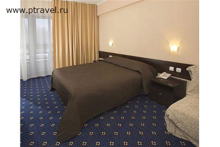 - 2-местный 1-комнатный "Стандарт" коннекшн (Ая-СТК). Однокомнатный номер с балконом, кондиционер. Совмещен с другим номером через проход-дверь. Площадь 13-20 кв.м. Две односпальные кровати, в соседнем номере двуспальная кровать, тумбочки, шкаф, письменный стол, ТВ, фен, мини-холодильник. Туалетная комната: WC, раковина, душ. 2 основных места.