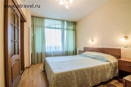 2-местный 2-комнатный "Люкс". Комфортабельный двухкомнатный номер площадью 32 кв.м с видом на море. Состоит из гостиной, спальни и ванной комнаты. В гостиной находится мягкая мебель, ЖК телевизор, холодильник, телефон, шкаф, в спальне – двуспальная кровать , прикроватные тумбочки, письменный стол.