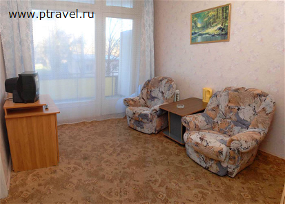 К Вашим услугам - 2 комфортабельных 7-этажных спальных корпуса, соединенные теплым переходом со столовой (лечебный корпус и водолечебница - в 100 м). Гостям предлагаются следующие варианты размещения: