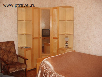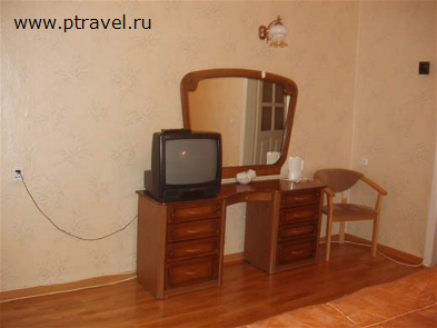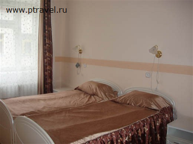 1-комнатный 2-х местный номер с удобствами, телевизором и холодильником. В номере две 1-спальные кровати и кресло-кровать (дополнительное место).