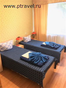 Размещение в 3 кирпичных 3-этажных спальных корпусах (столовая, клуб, спортивная база - отдельно стоящие здания)