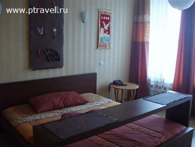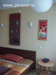 1-комнатный 2-местный тематический номер (5 номеров): в комнате 16 кв. м - двуспальная кровать, цветной телевизор (15 каналов), журнальный столик, московский телефон, ванная комната (совмещенный санузел) с новой сантехникой и феном, холодильник, лоджия.
