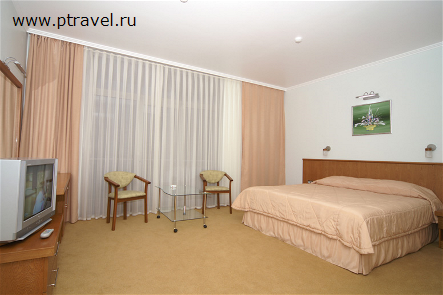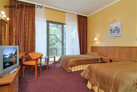 2-местный 1-комнатный «Стандарт» (23 м2): комната с большой французской кроватью или двумя раздельными кроватями, автономная система кондиционирования, телефон, телевизор, мини-бар, мини-сейф, фен, санузел – ванная или душевая кабина, балкон.