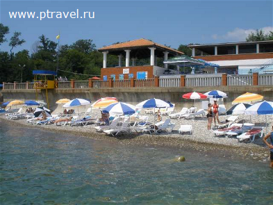 - пляж (оборудованный галечный, спуск до пляжа по склону 500 м)