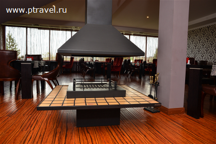 2 спальни (двуспальная кровать и две односпальные кровати), раздельный санузел (ванна, туалет, раковина), обеденный зал (холодильник, чайник, набор посуды), каминный зал.