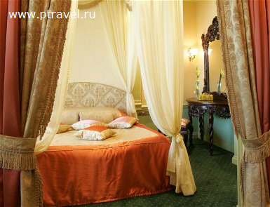 Номера категории «Сюит» редставлены элегантными номерами с балконами. Интерьер номеров выполнен в венецианском стиле. Теплые бордовые тона, роскошная широкая кровать и мягкие подушки – все создано для того, чтобы Вы могли полностью насладиться отдыхом после работы или прогулок по Петербургу.
