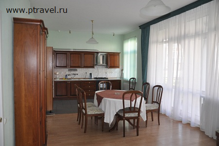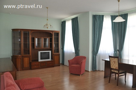 Пансионат - современный архитектурный ансамбль, включающий в себя три 8-этажных корпуса, соединенных между собой. Из любого корпуса можно попасть в спорткомплекс с бассейном и спортивным залом. На Ваш выбор предлагаются полностью оборудованные комфортабельные номера, в том числе 5-комнатные люксы.