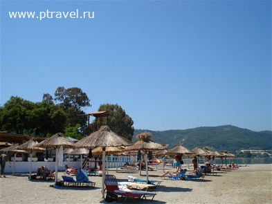 Песчано-галечный, зонтики на пляже - бесплатно, лежаки у бассейна - бесплатно, на пляже за доп. плату.