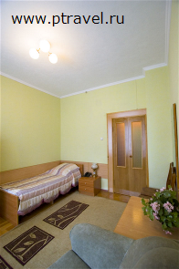 - 1-местный 1-комнатный "Эконом": 12 кв.м., односпальная кровать 2 шт, прикроватные тумбочки, шкаф, кабельное телевидение (30 каналов), холодильник, санузел: с душем.