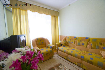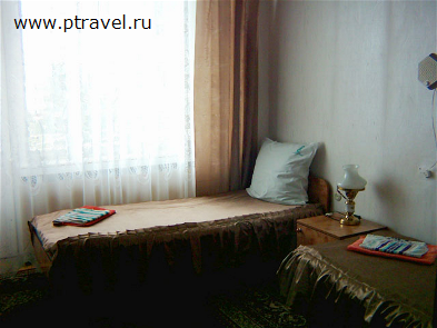 - 1-местный 1-комнатный "Улучшенный": 12 кв.м., односпальная кровать 1 шт, прикроватная тумбочка, шкаф, стол, кабельное телевидение (30 каналов), холодильник, электрочайник, в некоторых номерах имеется телефон, в некоторых номерах кондиционер, санузел: с душем.