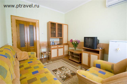 - 2-местный 2-комнатный «Люксы»: 25 кв.м., двуспальная кровать, прикроватные тумбочки, набор мягкой мебели, шкаф, сплит-система, фен, кабельное телевидение (30 каналов), wi-fi, холодильник, электрочайник., санузел: 2 раздельных санузла с ванной и душем.