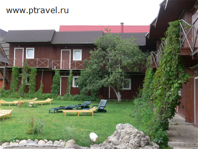 Корпус № 2. Расположен на живописной площадке внутреннего дворика и представляет собой 2-хэтажное строение на 20номеров. Каждый номер площадью от 16м2 имеет отдельный вход с улицы.