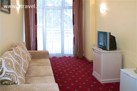 2-местный 2-комнатный «Люкс» Номер состоит из двух комнат: гостиной с мягкой мебелью и спальни с двуспальной кроватью. В номере - балкон, ванная комната, совмещенная с санузлом. На полу - ковровое покрытие и плитка.