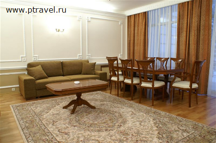 2-местный 3-комнатный номер «Президентский» Номер состоит из трех комнат: просторного холла, гостиной с плазменным телевизором, кабинета для деловых переговоров и уютной спальни с изысканной итальянской мебелью.