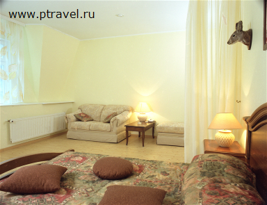 4 2-комнатных люкса расположены в корпусе № 2. Каждый номер состоит из гостиной площадью 25 кв.м. и спальни площадью 13 кв.м. Ванная комната площадью 4 кв.м. , оборудована ванной, необходимыми туалетными принадлежностями, феном.