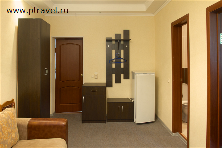 3-местный 2-комнатный люкс номер с удобствами (туалет, умывальник, душ, телевизор, холодильник, электрочайник, большая кровать в спальне и диван во второй комнате).