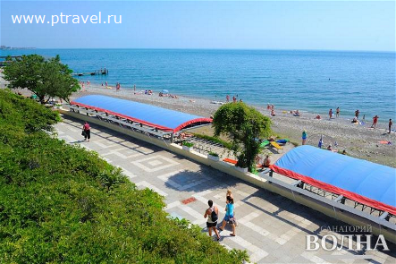 На общественном транспорте: от аэропорта Адлер маршрутное такси № 105к до остановки "Санаторий Волна". От ж/д станции Хоста маршрутным такси № 134 до остановки "Санаторий Волна". От ж/д вокзала г. Сочи маршрутное такси №№ 143, 118, 122 до остановки "Санаторий Волна".