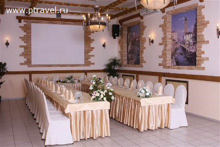 Предпочитаете ли вы русскую или европейскую кухню, ваши пожелания не останутся без внимания. В ресторане 4 банкетных зала: «Олимп», «Охотничий», «Венецианский» и «VIP-зал». Наших гостей ждет Восточный зал, где вам подадут восхитительный ароматный кофе, сигару или кальян. Но если, вам хочется покоя и тишины, вы можете заказать доставку обеда или ужина в номер. Ваше желание будет выполнено моментально доброжелательными и внимательными официантами.