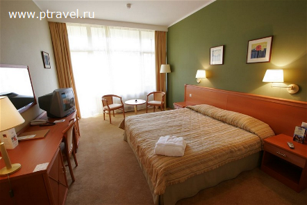 Расположен в главном здании отеля, предназначен для одно-двухместного проживания. Комплектация номера: центральное кондиционирование с индивидуальным теплоконтролем, итальянская мебель, кабельное телевидение, телефон, мини-бар, сейф. В номере двуспальная кровать.