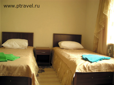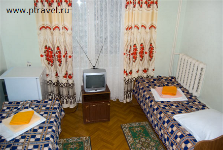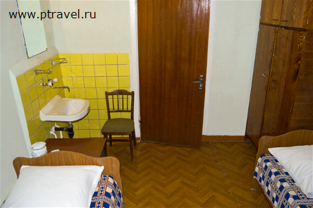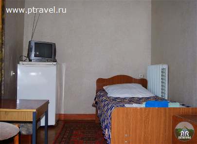 В номере: чайник, телевизор, холодильник, раковина с горячей и холодной водой, чайные пары, графин для воды, стаканы, таз для умывания. Душ и туалет на этаже.