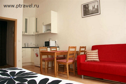 Апартаменты на 4 чел.(2+2) 1 комнатная квартира с кухонным уголком, 30 м2, на втором этаже полностью реконструированного дома 19 века, с лифтом.