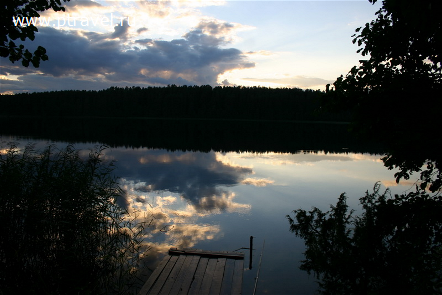 из г.Санкт-Петербурга - автомобилем до г. Полоцк, далее по трассе Полоцк – Минск до дер. Сорочино , повернуть направо на г.п. Ушачи, в Ушачах налево по указателю «Лесные озёра» (9 км.)