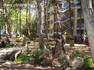 Именно так можно охарактеризовать пансионат «Лучезарный» в Крыму. «Лучезарный» - это удивительное место на берегу Черного моря, наполненное редкими и прекрасными растениями. На 6,5 га разместились кедры, березы, туи, сосны, лавр, голубые ели, можжевельник, самшит, жасмин – настоящий оазис со своеобразным климатом, который создается за счет сочетания морского и степного воздух и великолепными цветниками. Специалисты дизайнеры наполнили парк невиданными созданиями. Тут и жар-птица, и сказочные персонажи, и чудо-корзины из цветов, да много ли чего еще!...Все зеленые чудеса пансионата "Лучезарный" можно посмотреть на наших фото.