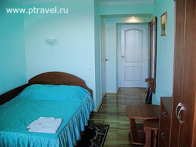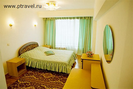 2-местный 1-комнатный 1 категории с кондиционером. Общая площадь номера 18 кв. м. В номере: две односпальные кровати или одна двуспальная кровать, две прикроватные тумбочки, две настольные лампы, туалетный столик с зеркалом, кондиционер, холодильник, телевизор, электрочайник, гардеробный шкаф. Номера оснащены санузлом: душ или ванна, унитаз, умывальник, фен, зеркальная полочка для туалетных принадлежностей, полотенца (банное, для лица, для ног). В прихожей встроенный шкаф, зеркало с полочкой. Балкон с видом на море и набором летней мебели.