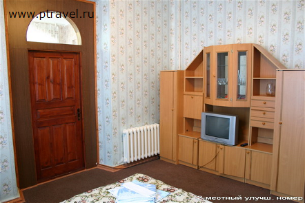 2-местный 1-комнатный "Улучшенный" S=16 м2. Номер с удобствами (туалет, умывальник, душ). В номере: ТВ, холодильник, набор мебели, балкон.