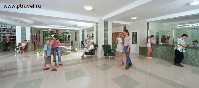 6 трехзвездочных гостиниц на 1000 мест, столовый комплекс диетического питания, водогрязелечебница, спортивные и тренажерные залы, закрытый бассейн с подогреваемой морской водой, лечебно-косметологический центр "Мария".