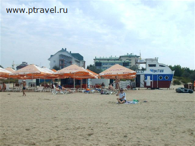 Пансионат «Кристалл» обладает территорией в 0,5 га на которой располагаются многочисленные объекты (несколько корпусов, бассейн). Море находится в 20 м от пансионата. Пляж – песчаный. Здесь есть своя инфраструктура в виде бара с прохладительными напитками.