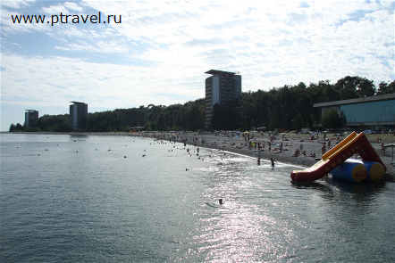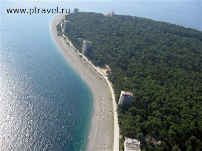 Объединение пансионатов "Курорт Пицунда" – это семь четырнадцатиэтажных корпусов, расположенных на самом берегу залива.
