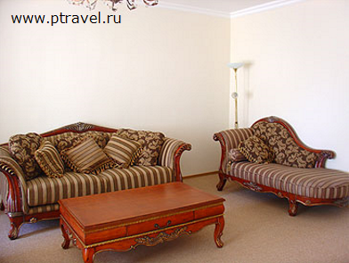 2-местный 2-комнатный "Люкс". В номере: ванна, биде, санузел, фен, мягкая мебель, телевизор, телефон, мини-бар с холодильником, кондиционер.