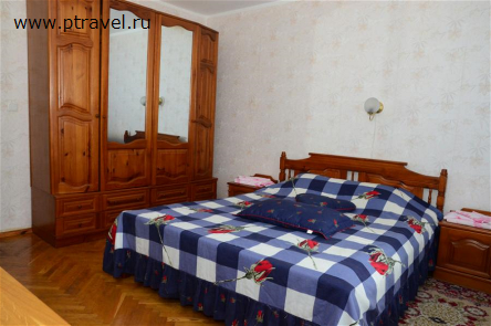 2-местный 2-комнатный "люкс" с двуспальной кроватью, шкафом, двумя тумбочками в одной комнате; диваном, столом, стульями, комодом, "горкой" для посуды, ТВ и холодильник – в другом; сантехнические услуги в номере.