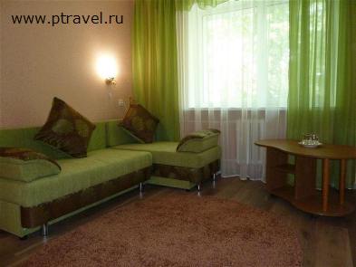 1-комнатный 2-местный "Люкс" (31 м кв.) с двуспальной кроватью, диваном, шкафом, столом, стульями, двумя тумбочками и ТВ; отдельная комната с холодильником, кухонным столом и стульями; сантехнические услуги в номере.