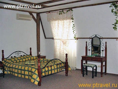 - 2-местный именной люкс «Греческий»: багажница; 2-спальная кровать, журнальный и письменный столики. Самый большой номер - площадь 180 м/кв. Номер выполнен в древнегреческом античном стиле.