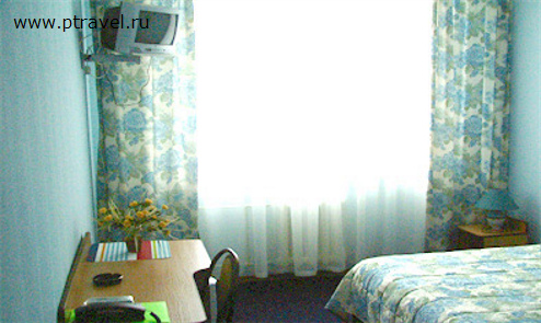 К Вашим услугам 33 номера гостиницы - от обычных одноместных до номеров "люкс", в которых могут разместиться 50 человек. В каждом номере гостиницы есть санузел, телевизор, холодильник, телефон.