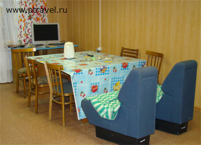 В корпусе: общая кухня и столовая: холодильник, плита, микроволновка, чайники, посуда, телевизор со спутниковым ТВ. Горячая и холодная вода.