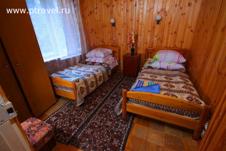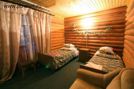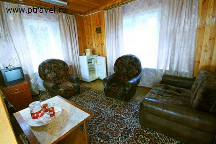 В коттедже: 1 комната с 2-мя кроватями, душ, туалет, телевизор, холодильник, чайник, комплект посуды, отопление с возможностью регулировки температуры.