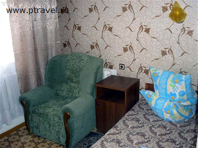 1-местные 1-комнатные номера (душ, туалет, кровать, тумбочка, стул, стол, телевизор)