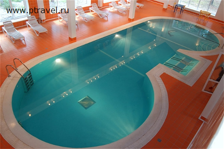 закрытый бассейн 25 метров с системой подводной подсветки, уникальной системой очистки воды, гейзерами и гидромассажем