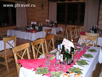 Ресторан «Медведь» нашего туристического комплекса рад приветствовать приезжающих к нам на отдых гостей. Уставшие с дороги, вы всегда можете заглянуть туда на чашечку ободряющего кофе с пирожным, а после прийти полакомиться свежевыловленной и приготовленной рыбой.
