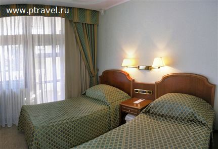 Двухместный Премьер. Однокомнатный номер средней площадью 32 кв.м. В каждом номере имеется балкон. Вид на море, набережную, город, через парк отеля на море. Ширина кроватей Twin - 110 см. 23 номера дополнительно укомплектованы раскладными диванами. Есть возможность дополнительного размещения. Количество номеров – 28.