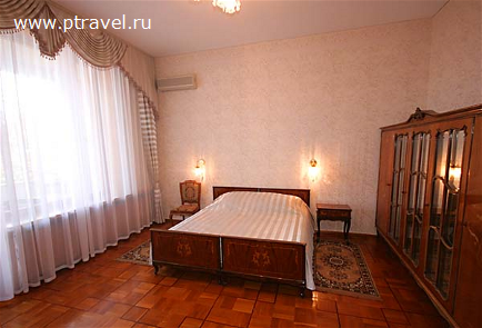 2-х местные номера с большой лоджией. С них открывается вид на море. В номере: две кровати, тумбочки, стол, стулья, кресло, трельяж, телевизор, холодильник, телефон, радиоточка.
