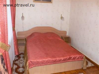 В современном 4х этажном здании расположены 2-х местные номера, ориентированные окнами на юг с видом на море. В номерах есть две кровати, тумбочки, стол, стулья, зеркало, радиоточка, телевизор, холодильник, телефон.