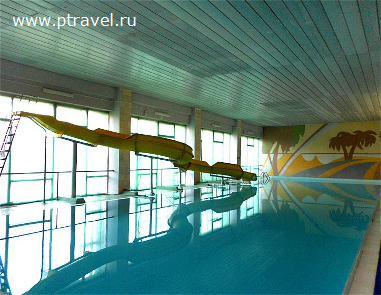 аквацентр с 2 бассейнами (большой и малый для детей), горками, гейзерами, реактивными струями, сауной;