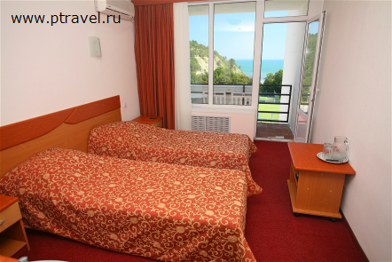 Для размещения отель Голубая бухта предлагает 1- и 2-х местные номера различной степени комфортности. Каждый номер оснащен цветным телевизором, кондиционером, холодильником, полными санузлами. Ежедневно проводится уборка номеров. Также в стоимость путевки входит трехразовое питание по системе «шведский стол».
