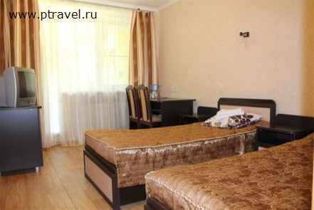 В гостинице пансионата расположены 43 номера, из них 27 номеров – «стандарт», 16 номеров – «улучшенный стандарт». Во всех номерах есть лоджии. Мы можем предложить Вашему вниманию 3 одноместных номера, 36 двухместных номеров и 4 трёхместных номера.