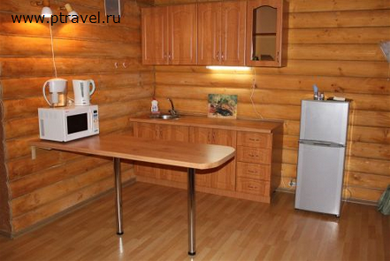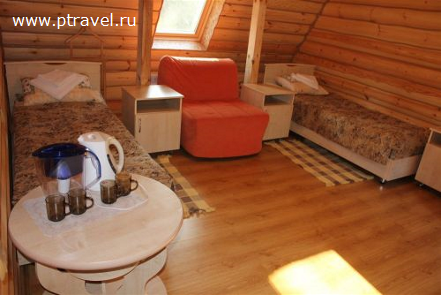 Оснащение номеров в мини-гостинице: комплект мебели (кровати, прикроватные тумбочки, журнальный столик, стулья, гардероб), жидкокристаллический телевизор, спутниковое ТВ, холодильник, электрический чайник, чайный сервиз, санузел с душевой кабиной (полы с подогревом).